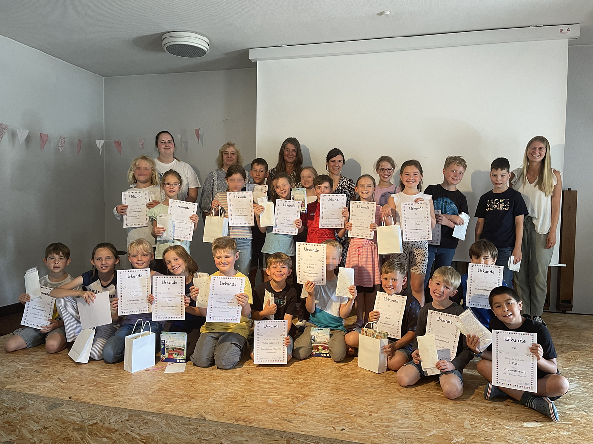 Am 8.7.24 fand unser erster Vorlesewettbewerb in den Jahrgangsstufen 1 bis 4 statt. Dort konnten sich die besten lesenden Kinder eines Jahrgangs miteinander messen, die zuvor in jeder Klasse durch einen Vorentscheid ermittelt wurden. Über die Platzierungen entschied eine Jury, die sich aus Frau Bub-Schnütgen, Frau Matheis und Frau Renner zusammensetzte. Am Ende des Tages gab es jedoch nur Gewinner, sodass jedes teilnehmende Kind mit einem Preis nach Hause gehen durfte.
