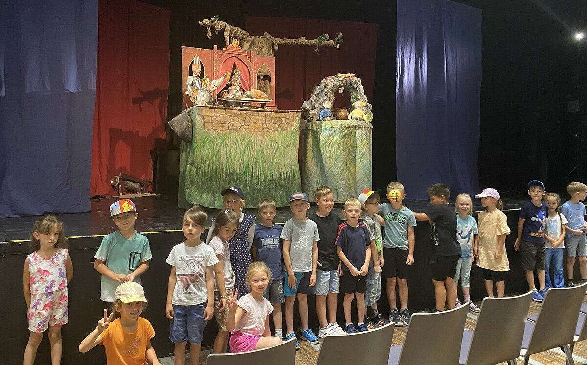 Am 26.6.24 besuchten die ersten Klassen gemeinsam das Kindertheaterfestival in der Kulturfabrik Roth. Bei dem Stück „Das magische Baumhaus“, das vom Theater Knuth dargeboten wurde, gab es jede Menge zu entdecken und zu lachen. Bei einer Mischung aus Schauspiel, Puppen und Musik wurden die Kinder von den Hauptfiguren Philipp und Anne zu einem Abenteuer mitgenommen.
