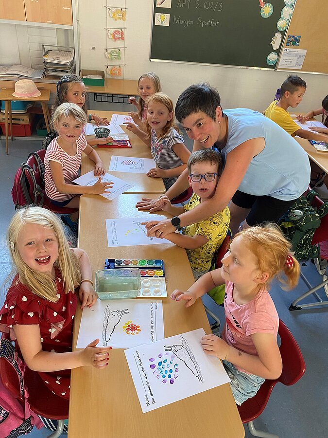 Am Ende des Tages präsentierten die Vorschulkinder stolz ihre Kunstwerke. Diese gemeinsame Aktivität stärkte nicht nur die Verbindung zwischen den Kindern der Grundschule und des Kindergartens, sondern förderte auch das kreative Denken und die Freude am gemeinsamen Lernen.