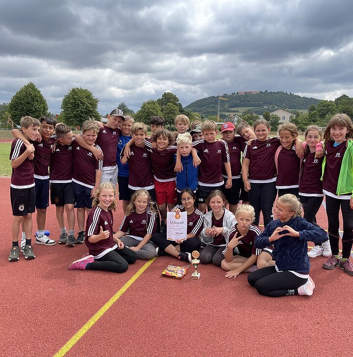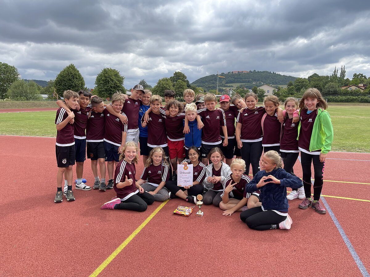 Am 9. Juli 2025 nahm die Klasse 3a am landkreisweiten Leichtathletiksportfest der 3. Klassen an der Freisportanlage in Weißenburg teil. In fünf verschiedenen Disziplinen (Ausdauerlauf, Ballweitwurf, Weitsprung, Hindernisstaffel und Sprintstaffel) gaben die Mädchen und Jungen ihr Bestes und erzielten in der Gesamtwertung Platz 2. Unsere Klasse konnte sich gegen mehrere Klassen anderer Grundschulen durchsetzen und holte einen der Siegerpokale nach Pleinfeld. Gratulation zu dieser sportlichen Leistung!