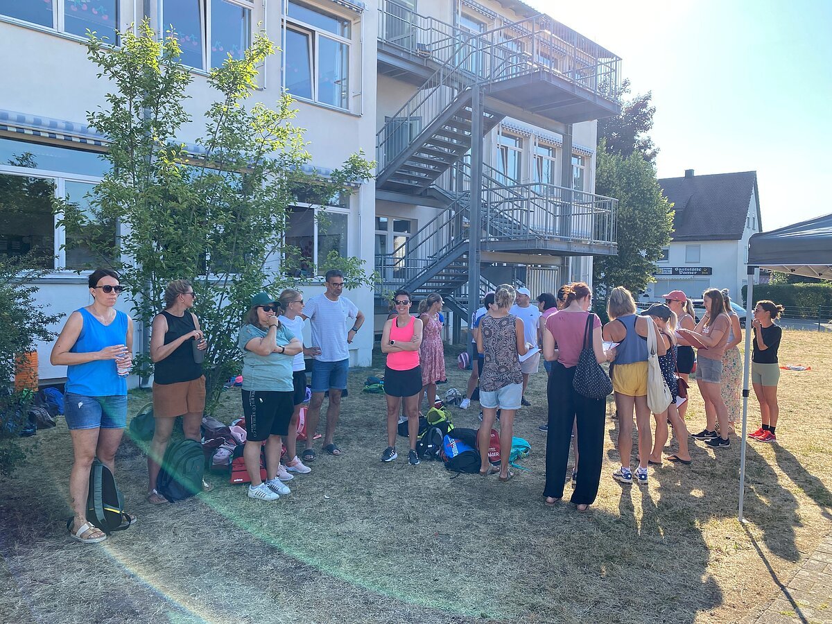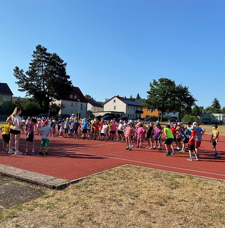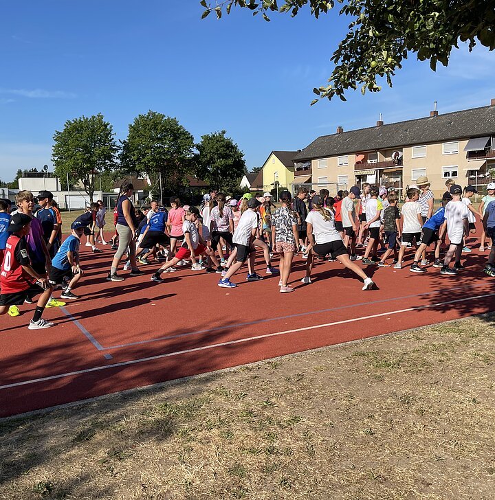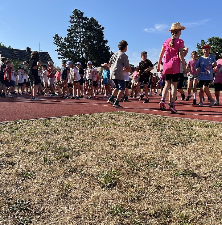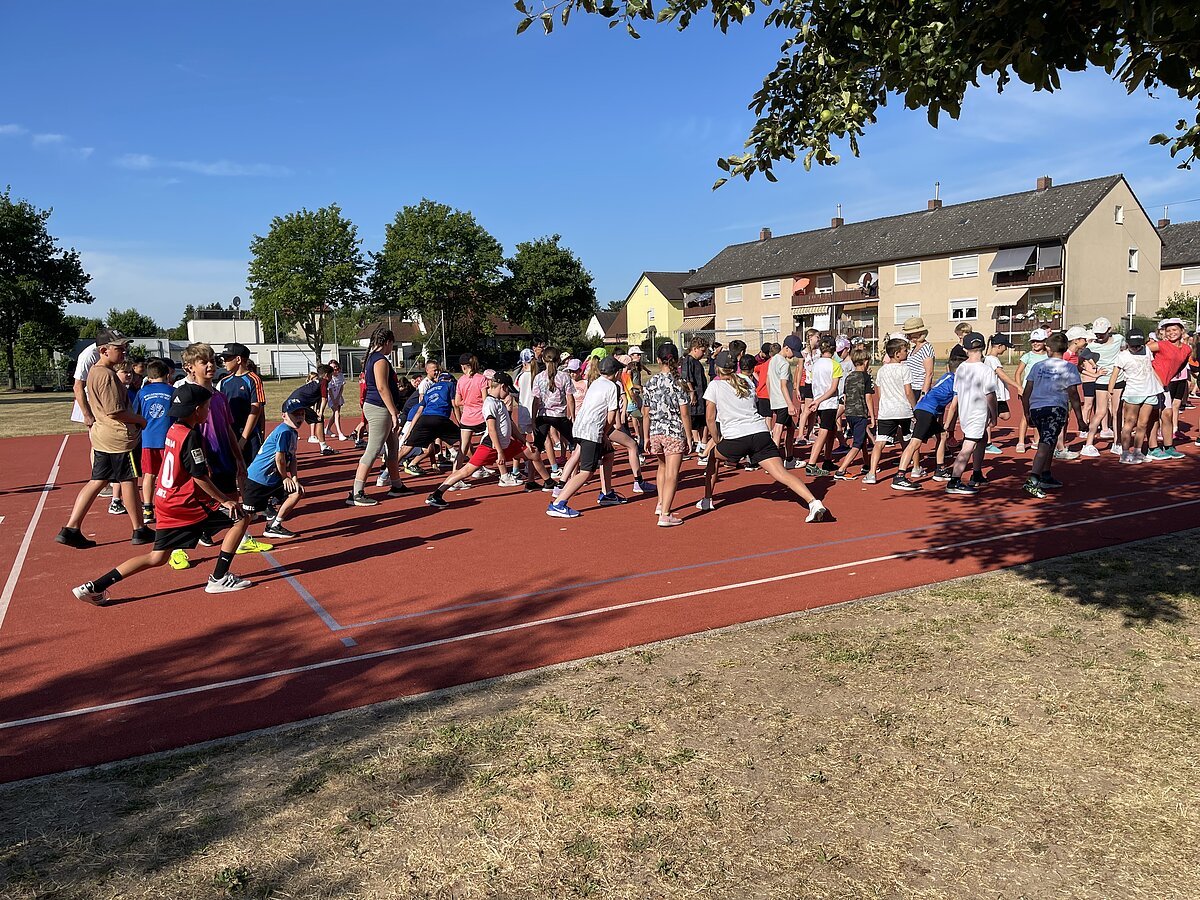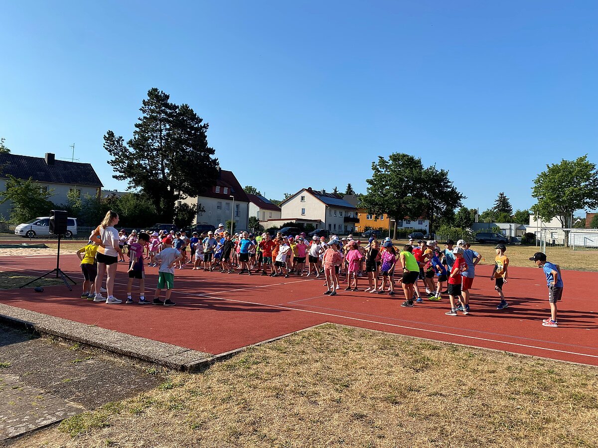 Die Bundesjugendspiele fanden dieses Jahr am 30.06.25 für die dritten und vierten Klassen und am 02.07.25 für die ersten und zweiten Klassen statt. Bei hochsommerlichen Temperaturen trafen sich alle Teilnehmer zum Aufwärmen mit Frau Streb auf dem Sportplatz. Anschließend zeigten die Kinder in den Disziplinen Weitsprung, 50m-Lauf und Weitwurf ihr Können. Daneben sorgten etliche Spielstationen für Spaß und Spielgelegenheiten. Bei der beliebten Wasserstaffel konnten die Klassen dann noch ihren Teamgeist zeigen. Für Erfrischung sorgte der Elternbeirat mit Wassermelonen und der Rasensprenger, der bei der Hitze für angenehme Abkühlung sorgte. Zum Abschluss wurden jeweils die besten Mädchen und Jungen aus jeder Jahrgangsstufe geehrt. Ein herzliches Dankeschön gilt allen Eltern, die als Riegenführer, Kampfrichter oder bei der Versorgung mit Wassermelonen geholfen haben.