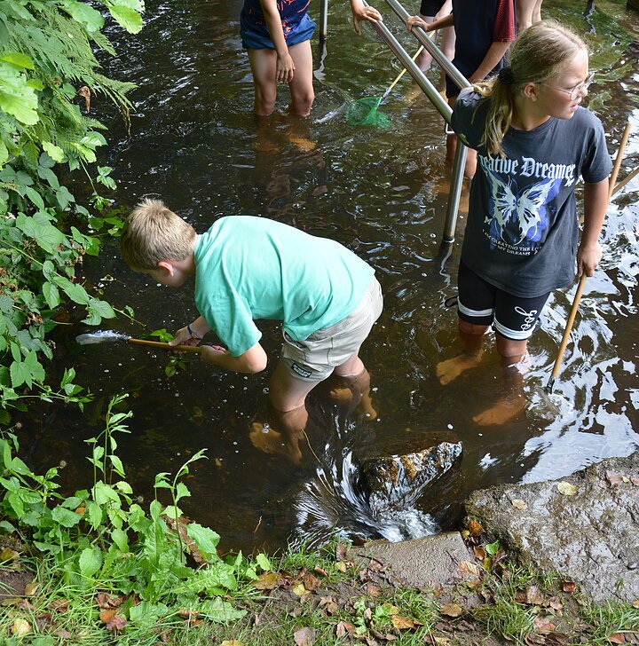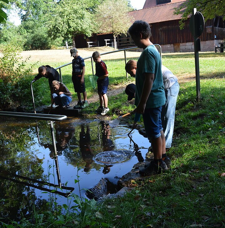 Im Rahmen der Aktion „Brombachsee - müllfrei“ bietet der Zweckverband Brombachsee in Zusammenarbeit mit dem LBV und der Umweltstation Muhr am See eine ganze Reihe Veranstaltungen für Kinder an. In diesem Schuljahr durften die Kinder der vierten Klassen an zwei Aktionen teilnehmen. Zum einen ging es dabei um Kleinstlebewesen im Wasser. An der Mandlesmühle wurde mit Keschern und Becherlupen untersucht, welche Wassertierchen sich finden lassen und was die Anzahl und Art der gefundenen Exemplare über die Wasserqualität aussagt. Mit Feuereifer wurde gekeschert und bestimmt und die gefundenen Tiere dann wieder vorsichtig frei gelassen. Wie wichtig Wasser nicht nur für das Leben der Wassertiere ist, sondern auch für uns Menschen und wie wenig achtsam wir teilweise mit diesem Gut umgehen erfuhren die Kinder bei einem Quiz, in dem es um das sogenannte „virtuelle Wasser“ ging - das Wasser, das für die Herstellung von Dingen benötigt wird. Schließlich wird vom Käse über ein T-Shirt bis zum Handy nichts ohne die Mithilfe des Wassers hergestellt und damit fängt das Wassersparen auch bei der Müllvermeidung an. Beim zweiten Termin erfuhren die Klassen (dieses Mal wegen des schlechten Wetters im Klassenzimmer) einiges über die im Brombachsee lebenden Fische. Es gibt da nämlich neben dem Waller auch noch andere Fische. Mit ein bisschen Übung schafften es die Kinder dann nicht nur, den Hecht vom Karpfen zu unterscheiden, sondern auch die Schleie von Zander und Barsch. Wer mehr über die Aktion Brombachsee - müllfrei erfahren möchte, wird hier fündig: https://www.zv-brombachsee.de/muellfrei/