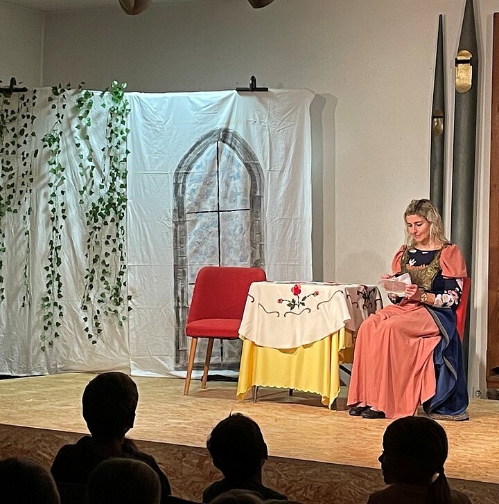 Am 21. November 2025 durften alle Klassen eine besondere Aufführung in der Aula erleben. Das Theater Kratzbürste brachte den Märchenklassiker "Aschenputtel" auf die Bühne. Mit viel Spielfreude und Humor gelang es den Schauspielerinnen, die Kinder in den Bann zu ziehen. Auch die märchenhaften Kostüme und die fantasievollen Szenenwechsel sorgten für zwei sehr unterhaltsame Vorstellungen. Ein herzliches Dankeschön an das Pleinfelder Theater Kratzbürste!