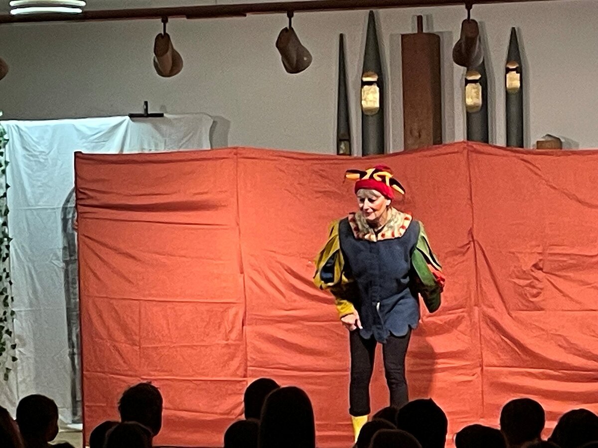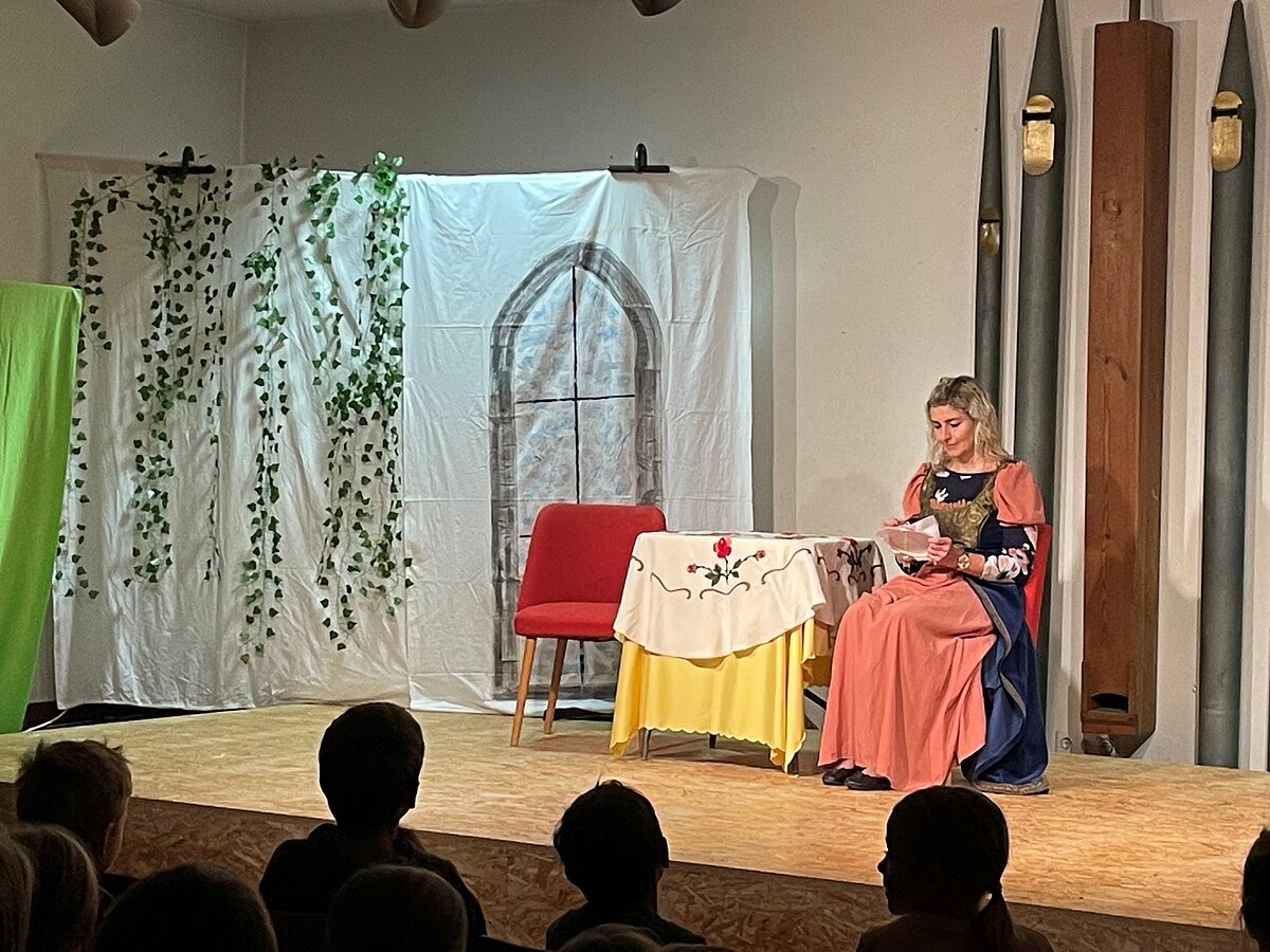 Am 21. November 2025 durften alle Klassen eine besondere Aufführung in der Aula erleben. Das Theater Kratzbürste brachte den Märchenklassiker "Aschenputtel" auf die Bühne. Mit viel Spielfreude und Humor gelang es den Schauspielerinnen, die Kinder in den Bann zu ziehen. Auch die märchenhaften Kostüme und die fantasievollen Szenenwechsel sorgten für zwei sehr unterhaltsame Vorstellungen. Ein herzliches Dankeschön an das Pleinfelder Theater Kratzbürste!