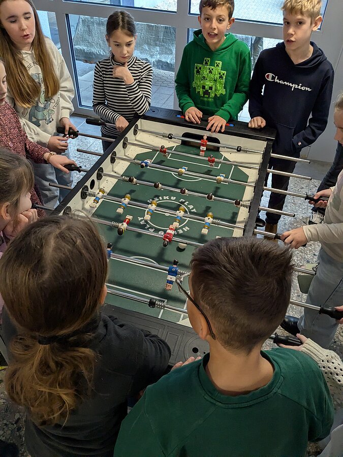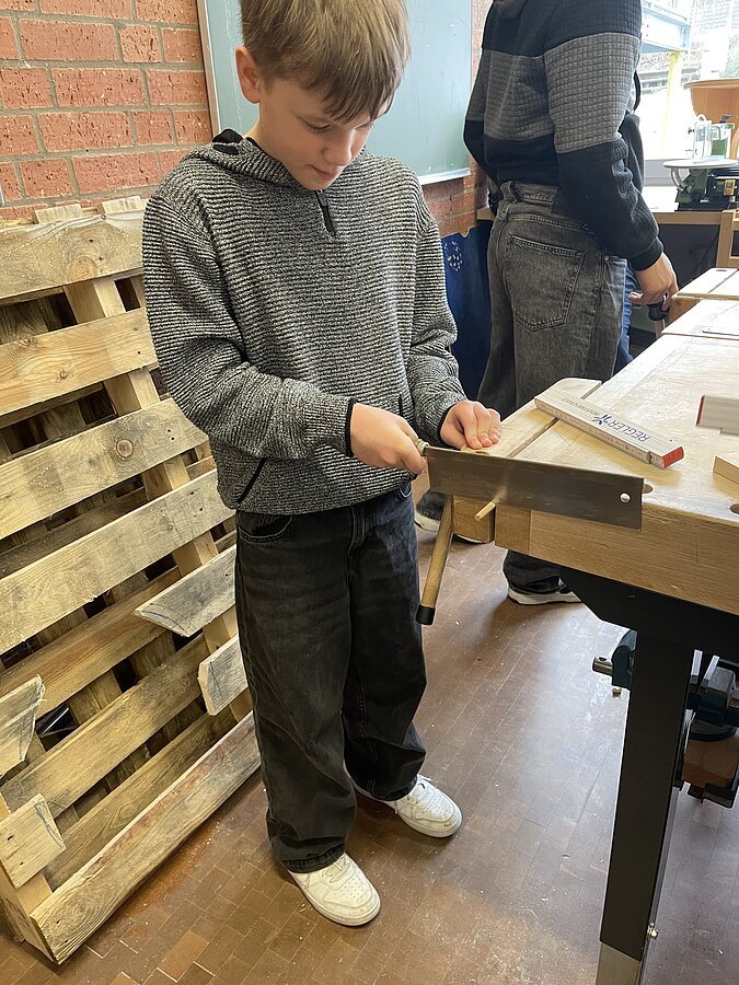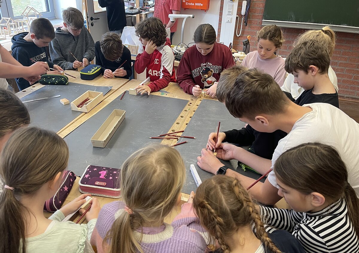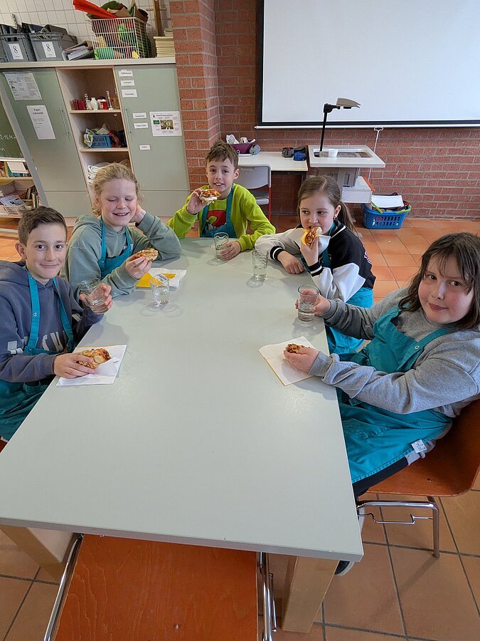 Am 9. Februar 2026 erlebten unsere 4. Klassen einen Schnuppertag an der Brombachsee-Mittelschule in Pleinfeld. Nach der Begrüßung durch die Schulleiterin Frau Höhn-Fiedler standen vier Angebote auf dem Programm, welche von Lehrkräften sowie von Schülerinnen und Schülern der Mittelschule begleitet wurden. So konnten unsere Viertklässler in einer Schulhausrallye das Schulgebäude kennenlernen. Zudem übten sie auf vielfältige Weise einen englischen Dialog ein. Unter fachkundiger Anleitung der Mittelschüler fertigten die Grundschüler im Werkraum einen Stiftehalter aus Holz an und bereiteten in der Schulküche Pizzabrötchen zu, welche natürlich gleich verspeist wurden. Wir bedanken uns ganz herzlich bei allen Beteiligten der Mittelschule, die uns diesen abwechslungsreichen Vormittag ermöglichten!