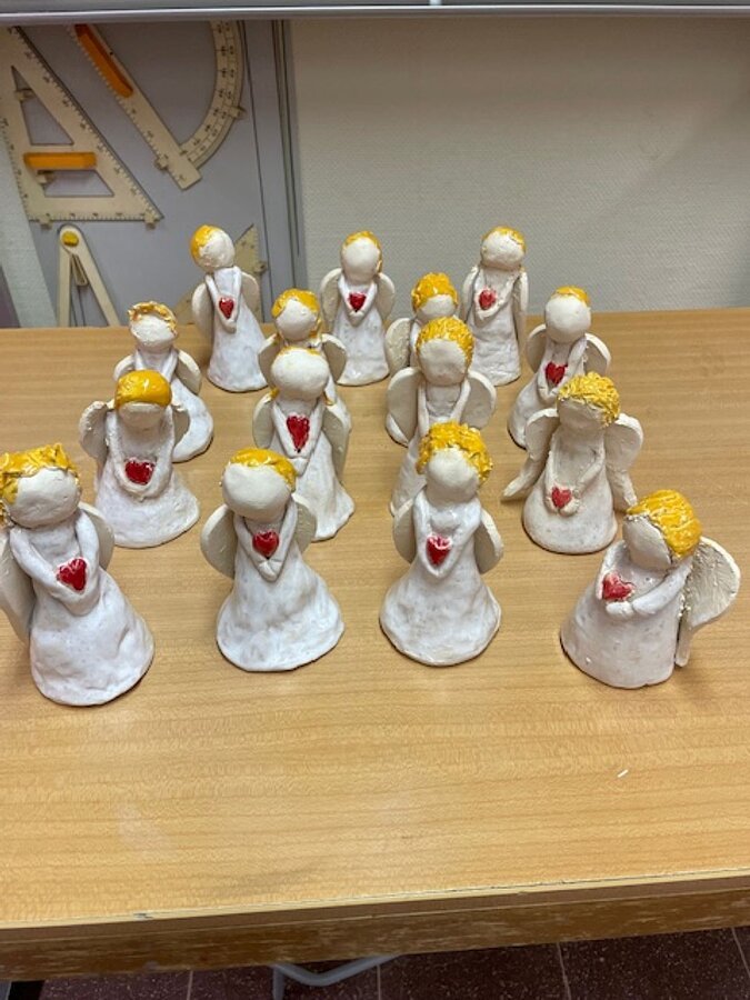 Im November führte die Töpferin Frau Bengel gemeinsam mit den Viertklässlern ein kreatives Weihnachtsprojekt durch. Die Schülerinnen und Schüler durften eigene Weihnachtsengel töpfern, glasieren und anschließend brennen, ein besonderes Erlebnis, das viel Freude bereitete und wundervolle Ergebnisse hervorbrachte.
